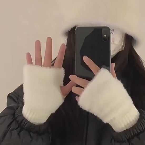 Stay warm and chic this winter with our Fleece Winter Fingerless Gloves. Crafted from luxurious imitation mink material, these gloves offer both comfort and elegance. The solid pattern and wrist length provide a sophisticated look, while the blend of acrylic and cotton ensures warmth during colder months. Available in black, white, pink, and khaki, these gloves are perfect for stylish winter outings.